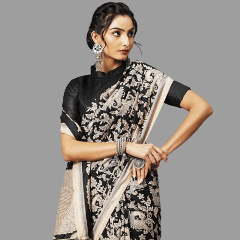 Saree Color :- Black || Blouse Color :- Black