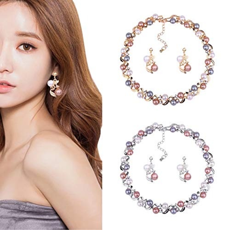 18k Gold Plated Pearl Necklace Set