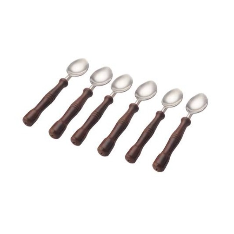 أماران – طقم ملاعق حلويات بمقبض خشبي ستانلس ستيل - طقم من 6 قطع