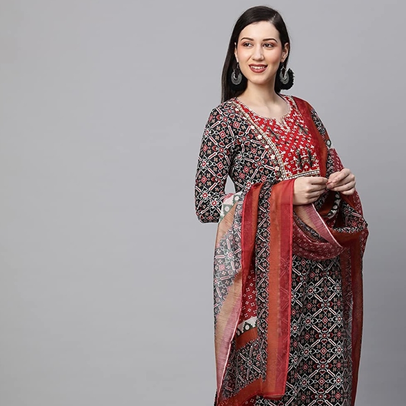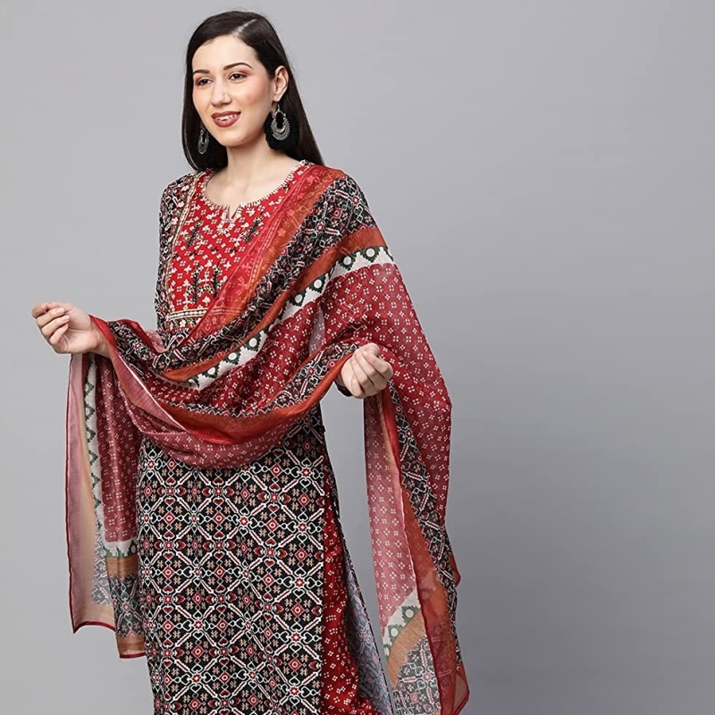 ANNI DESIGNER Women's Cotton Blend Printed Straight Kurta with Pant & Dupatta