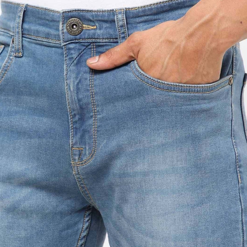 الرجال الأزرق سليم مدبب صالح ثقيل يتلاشى الجينز قابل للتمدد