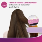 تصفيف سريع وسلس مع ألواح سيراميك مملوءة بالتيتانيوم يسمح بنقل سريع للحرارة وانزلاق سلس عبر الشعر