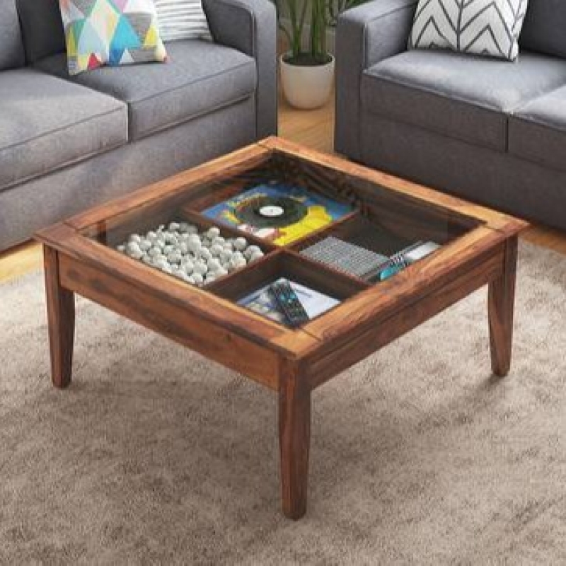 تيت مربع الخشب الصلب طاولة القهوة في خشب الساج النهاية