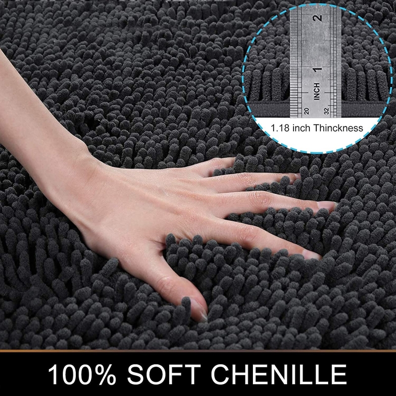 ULTRA-ABSORBENT: Bianca Bathroom mats are made of thousands of ultra-soft individual microfiber shags. The thick chenille fabric absorbs water quickly to help save your floors from dripping water while you're getting out of the bath.