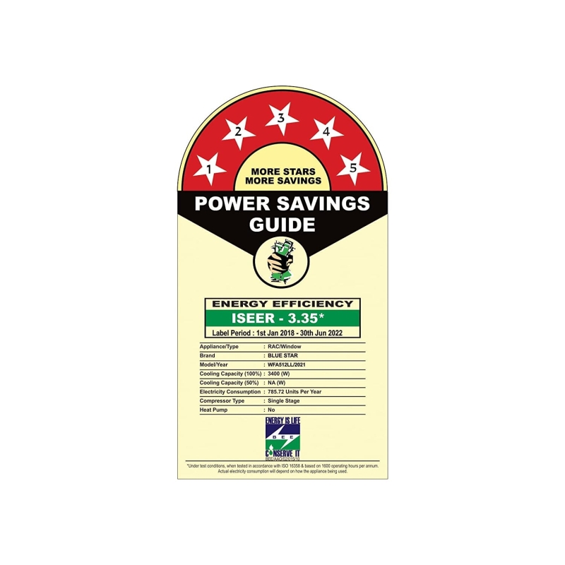 • Energy Rating: 5 Star. Annual Energy Consumption: 785.72 units. ISEER Value: 3.35 | The star rating is as per BEE guidelines on or before 30th June 2022.