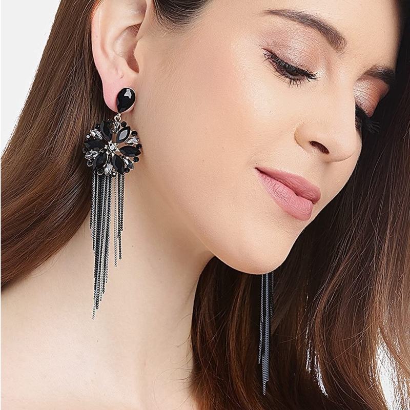• Collection : Crystal Studded Tassel Earings Jewellery