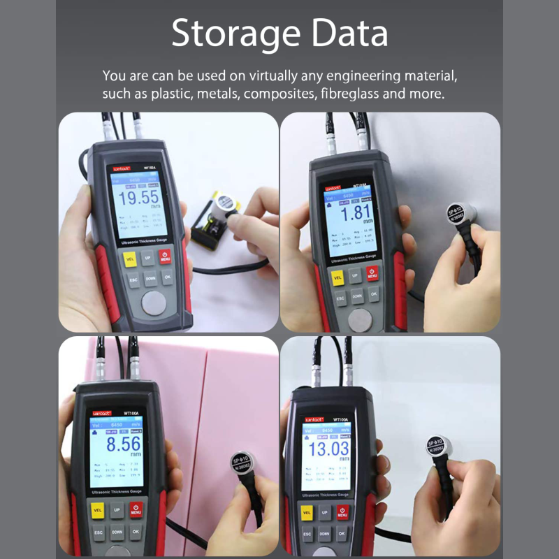 • Adjustable Sound Velocity: You can easily change sound velocity from 1000 to 9999m/s to get the most accurate results. it continually displays/updates the average, min/max, and several readings while measuring, and also you can set a high/low thickness limit alarm.
