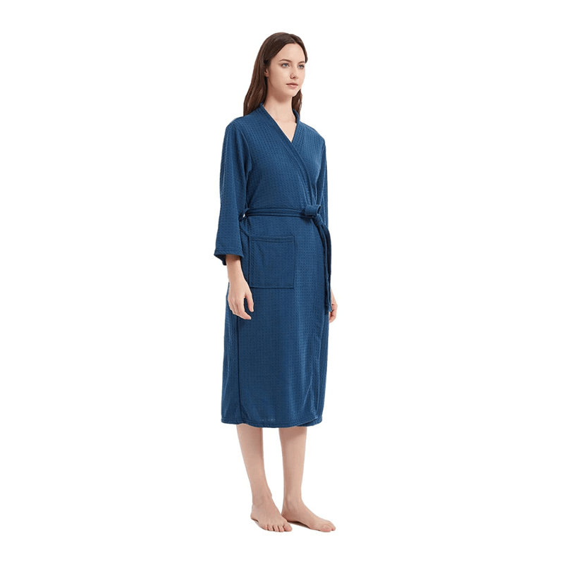 The women's bathrobes adopt improved non-cotton waffle fabric, they will be more soft, breathable, and lightweight than the one that contains cotton, and there will be no shrinkage after washing.