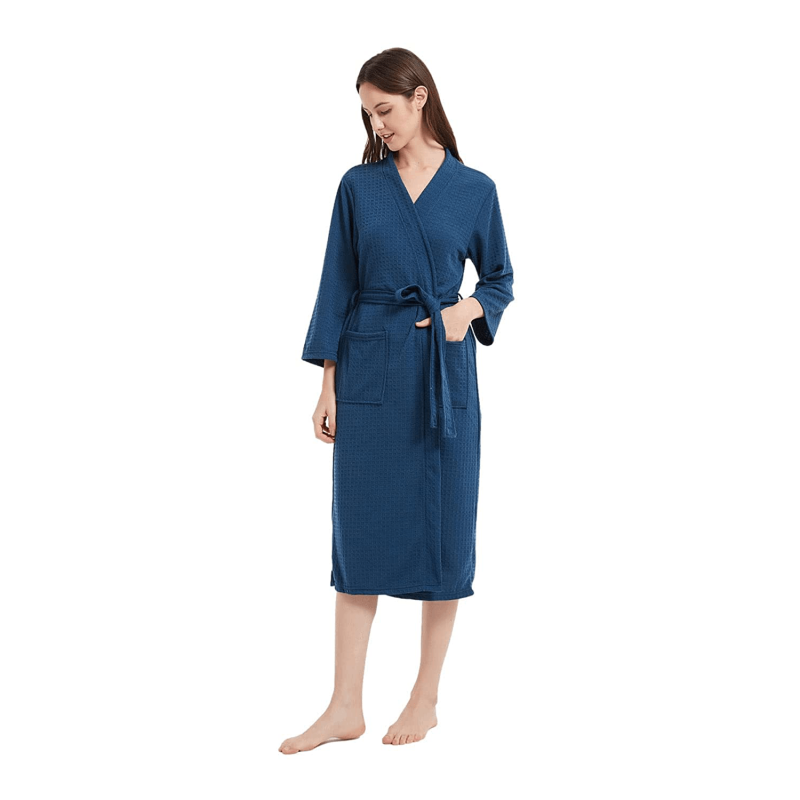The women's lightweight robes adopt the classic waffle style but are thinner than the common waffle material.