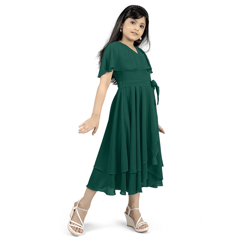 • Neck: - V Neckline with ruffles, Sleeve: - Short Flared Sleeve