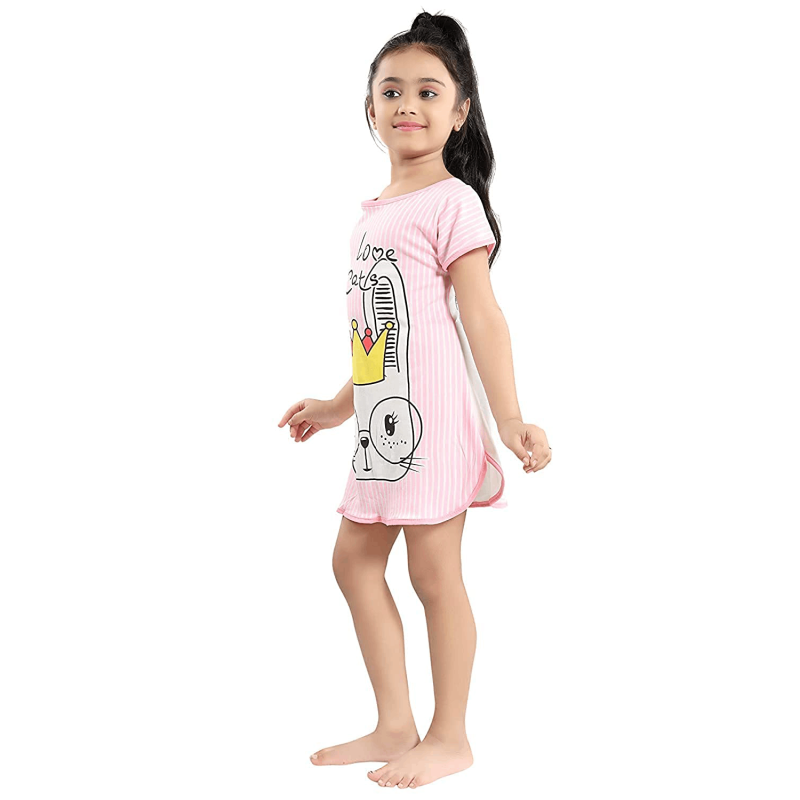 KidsCartoon-Multi Colour Pack OF 2-Med Kids Hosiery Cartoon Print Nighty/Nightwear/Top Beautiful Baby Shades- Assorted Print (Size 3years to10years)