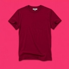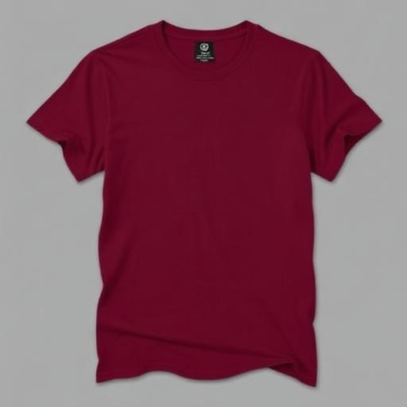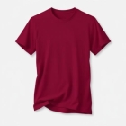 Maroon solid T-shirt, has a round neck, short sleeves.