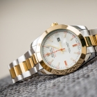 The light reflections on the case sides and lugs highlight the elegant profile of the 31 mm Oyster case, which is fitted with a domed bezel. Aesthetically, the Datejust has spanned eras, while retaining the enduring codes that make it, notably in its traditional versions, one of the most recognized and recognizable of watches.