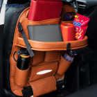 • Sturdy foldable tray and adjustable - made of hardboard, bear up to 2kg items, take your eating on the go more convenient and safe, Long enough adjustable top and bottom buckle straps, The bottom strap remains tucked under the seat back so the driver and passenger don't feel it, The backseat organizer will stay in place it won't slide off your car seat