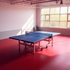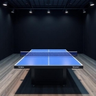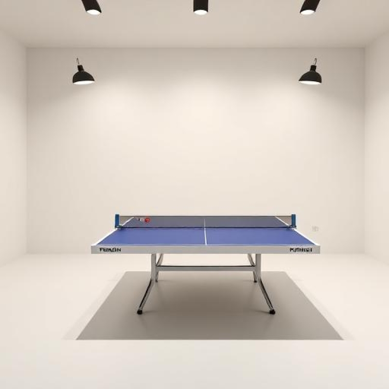 A standard table tennis court consists of a rectangular table measuring 9 feet (2.74 meters) in length, 5 feet (1.525 meters) in width, and standing 2.5 feet (76 cm) above the floor. The playing surface is divided into two equal halves by a net that is 6 inches (15.25 cm) high, stretched across the center. Each half of the table is marked with a white end line along the width and a white center line running from the end line to the net. The court area typically extends at least 5 meters (16.4 feet) in length and 3 meters (9.8 feet) in width around the table to allow for player movement. The playing surface is uniformly dark, usually blue or green, with a matte finish to minimize glare, and the lines are white for contrast.