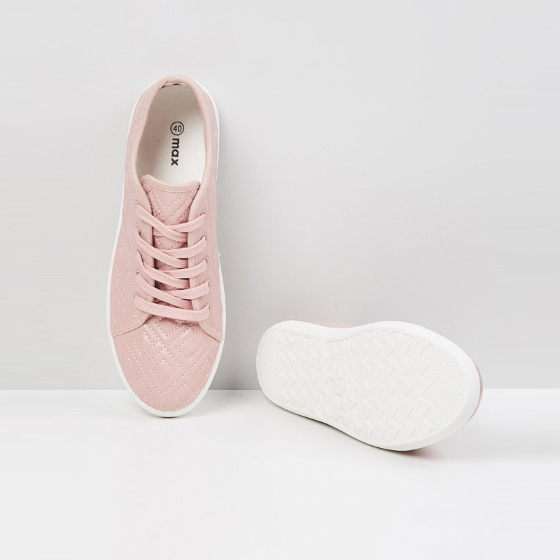 Women Pink Quilted PU Sneakers