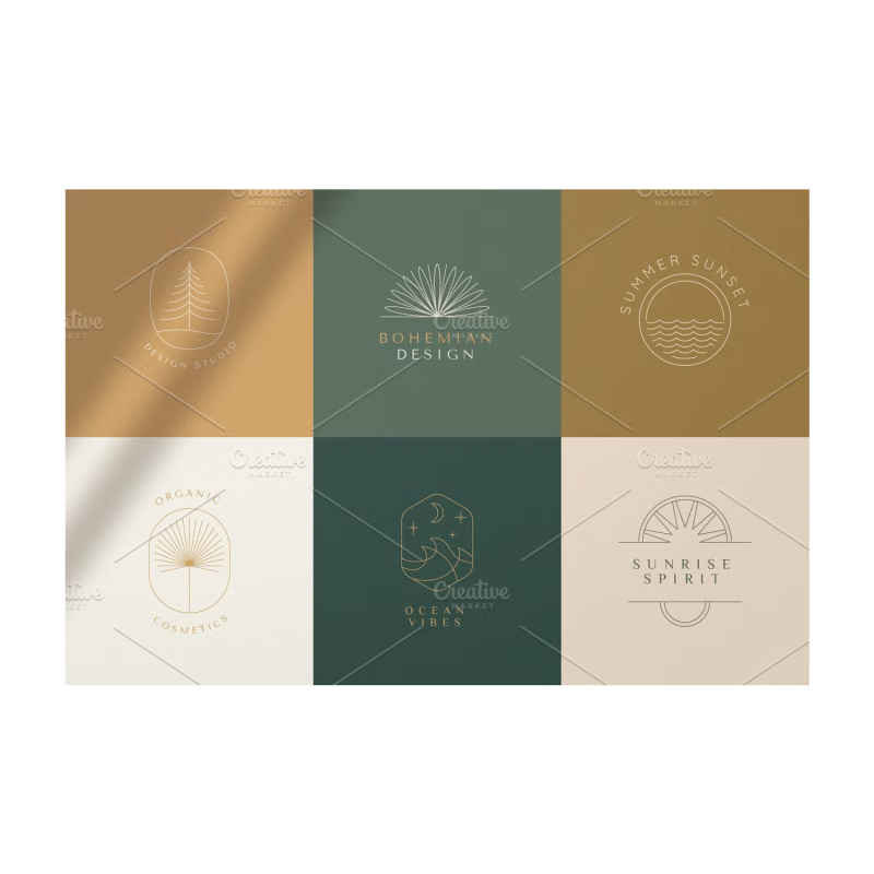الشعارات البوهيمية - مجموعة جديدة من عناصر وقوالب تصميم المتجهات. الشعارات المجردة وعناصر العلامات التجارية بأسلوب خطي بسيط عصري وشعارات وشارات لاستوديوهات التصميم والمحلات التجارية والشركات النسائية والمنتجات المصنوعة يدويا.