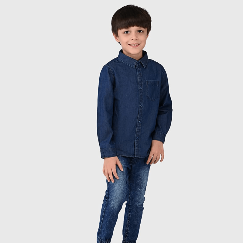 جونيور بويز 100٪ قطن أزرق داكن سادة العادية تناسب الأكمام الكاملة قميص دنيم