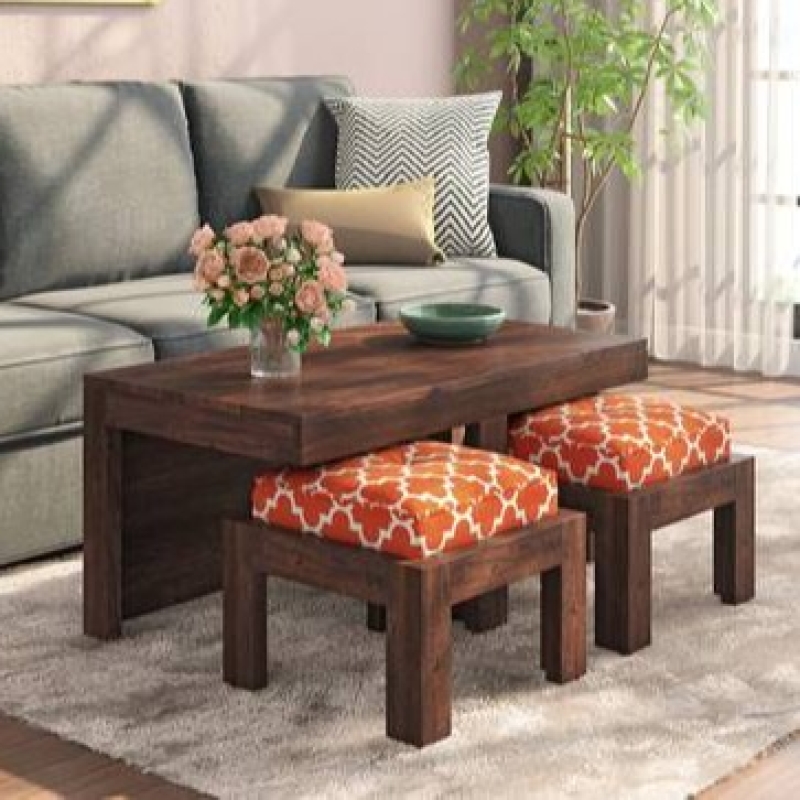 طاولة قهوة من الخشب الصلب من كيفاها مربعة في تشطيب الجوز