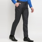 بنطلون رسمي أسود صلب متوسط الارتفاع، بزر للإغلاق، سحاب ذبابة، و5 جيوب