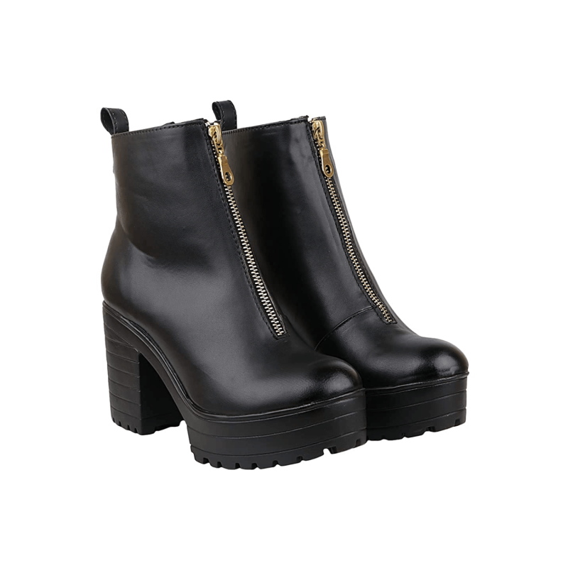 Womens Solid Zipper Block Heeled Boots