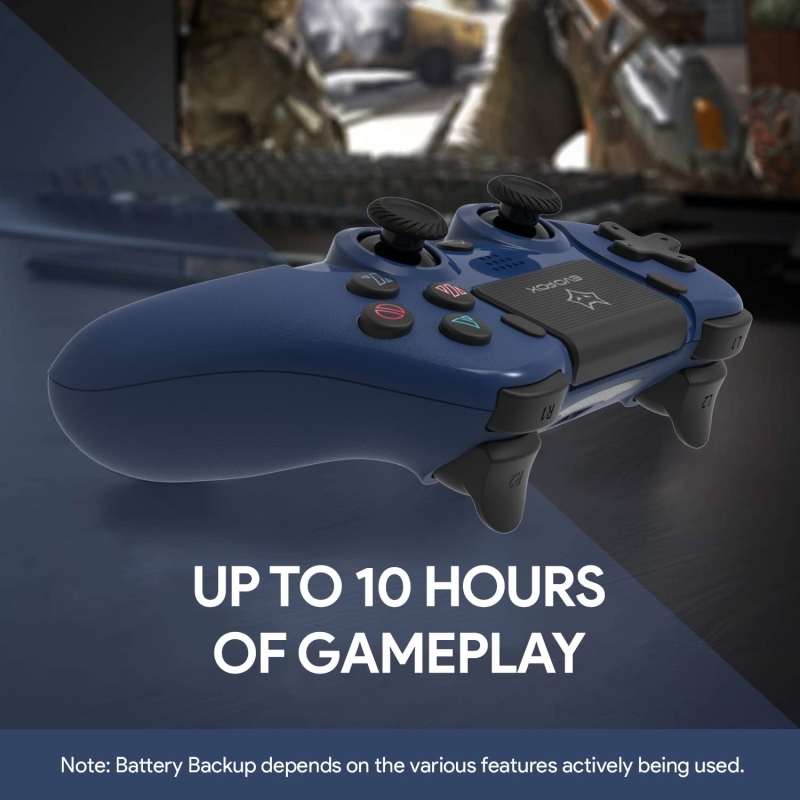 • The Elite Play Game Controller has a built-in battery, which requires only 2.5 hours of charging time and provides up to 10 hours of playback time. Best of all, it can be played while charging, helping you stay away from battery drain problems!