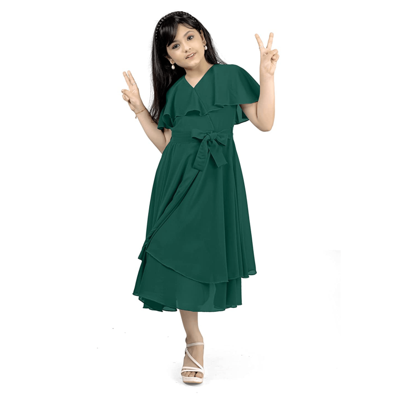 • Neck: - V Neckline with ruffles, Sleeve: - Short Flared Sleeve