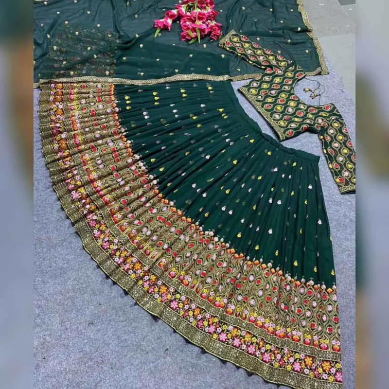 The 3D design adds a layer of depth and intricacy, creating an eye-catching visual effect that beautifully complements the vibrant colour palette. The dupatta, a traditional scarf, is an elegant addition to this ensemble and enhances comfort and style. The Designer Net 3D Work Lehenga Choli with Dupatta in Green is perfect for various occasions such as parties, weddings, and celebrations. Its lightweight and breathable fabric ensures that you can fully enjoy the festivities without feeling weighed down. The soft net material offers comfortable wear, even during prolonged use. The lehenga is designed to flatter all body types, providing a stylish and flattering silhouette that is both elegant and practical.