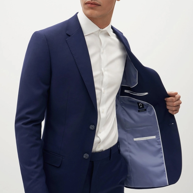 Peter England Polyester Blend Men Navy Blue Three Piece Suit