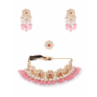 Pink Stones & Layer Cluster Beads Kundan Flowers Choker Necklace