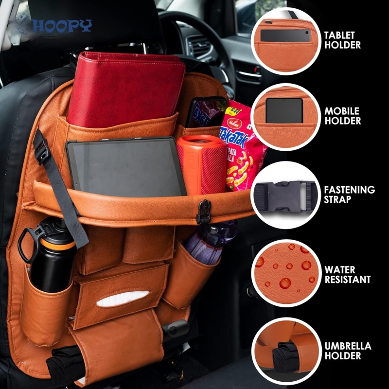 • Keep your car clean - you could wipe clean with a soft cloth, The back seat organizer is made of luxury pu leather to ensure durability and eliminate stretching or shrinkage.