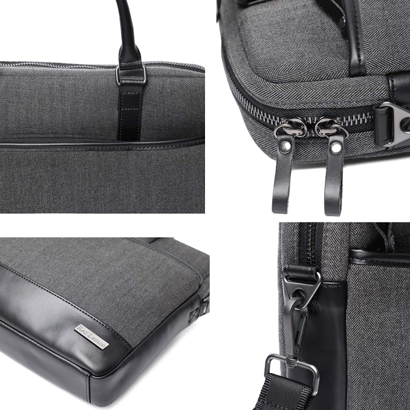 MATERIAL: Highend microfiber leather sewed with durable herringbone woolen fabric makes this bag long-lasting use. Seamless stitching, soft to touch, and long-lasting durability provide an elegant outlook as well as protect your laptop from waterproofing, shock, and other damages