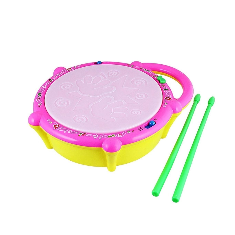 • Please Note: Please insert Fresh AA batteries in the drum and Press Music Button to start the drum. This is a sensor-based drum, so it can be played either with sticks or hands.