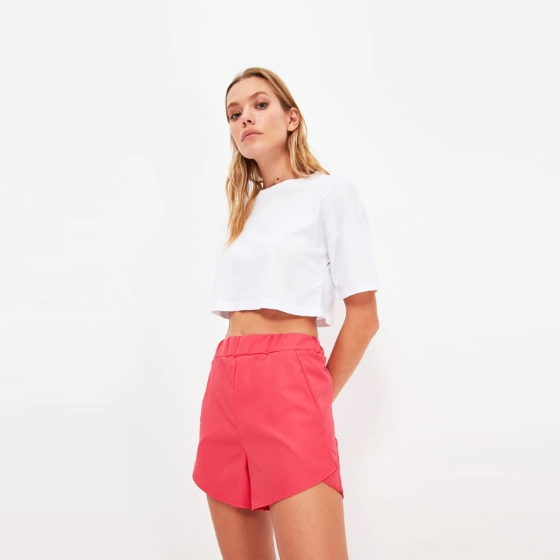 • Pink mid-rise regular shorts, has an elasticated waistband.